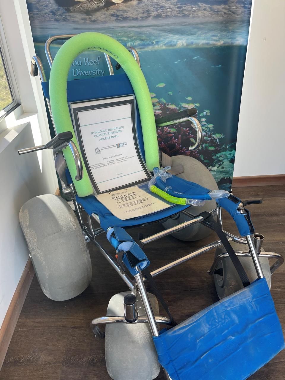Department of Biodiversity, Conservation & Attractions offers Beach Access Wheelchair is available from the Information Hut along the Coral Bay beach. Enquiries for Wheelchair access is available by contacting the Milyering Visitor Centre, or if you are in Coral Bay, please call (08) 9949 2808.