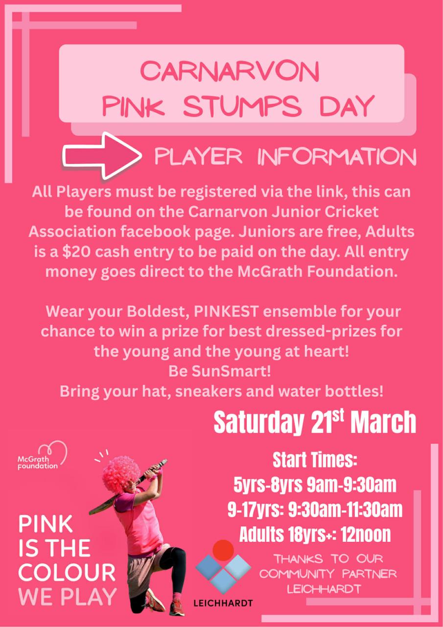 Alright Carnarvon, it’s time to pad up and pink up for Pink Stumps Day!