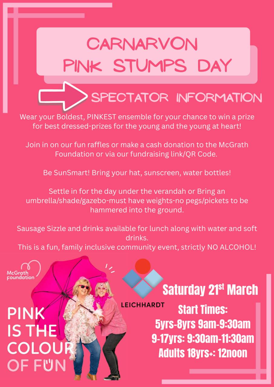 Please feel free to share to anyone you think is interested-the more the merrier! If anyone can't make it but would like to donate, please find our Carnarvon Pink Stumps fundraising link below