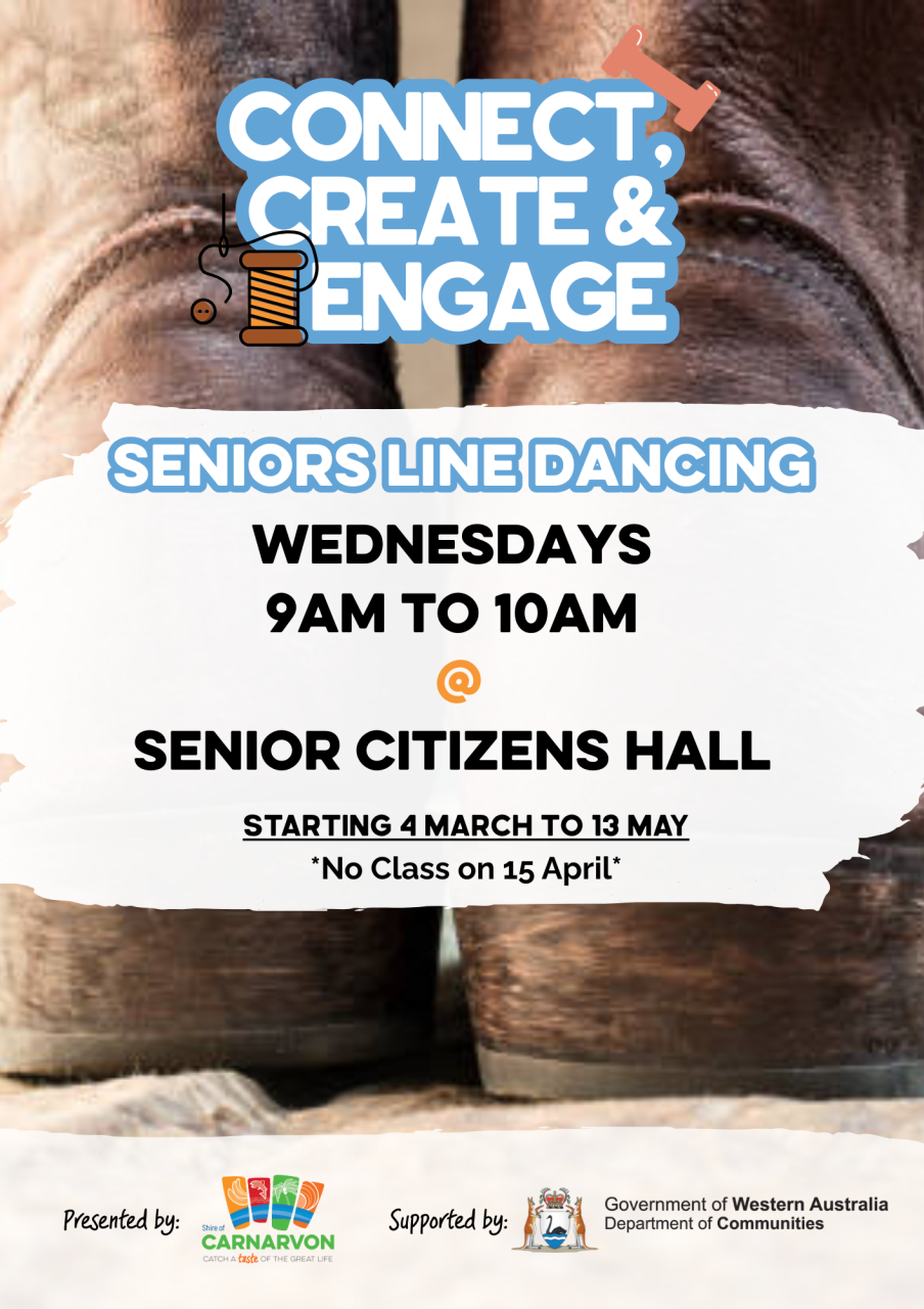 As part of the Carnarvon Active: Seniors Connect, Create and Engage program, we’re inviting older adults to lace up their shoes and join us for Line Dancing!