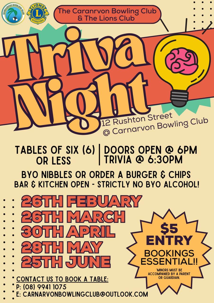 To book your table, contact the Carnarvon Bowling Club at (08) 9941 1075 or email carnarvonbowlingclub@outlook.com