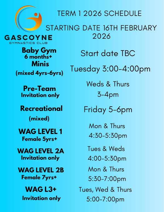 We offer gymnastics to children ranging in age from babies upwards. We offer competitive as well as recreational classes with opportunities to compete around the state. Our classes consist of baby gymnastics, minis, recreational, and WAG levels starting at pre level 1. We run every school term during weekdays at the Scouts Hall on Shallcross Street.