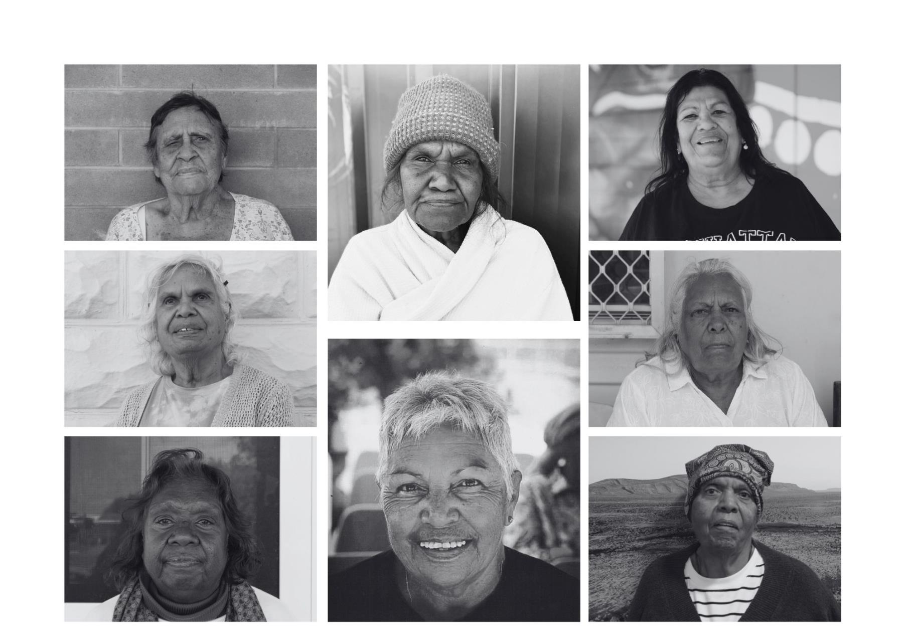 Led by artist Gosia Taylor and supported by community engagement from Cheryl Moncreiff, the project saw visits to eight respected Yinggarda women. Their photographs became the foundation for a striking series of black and white acrylic portraits.