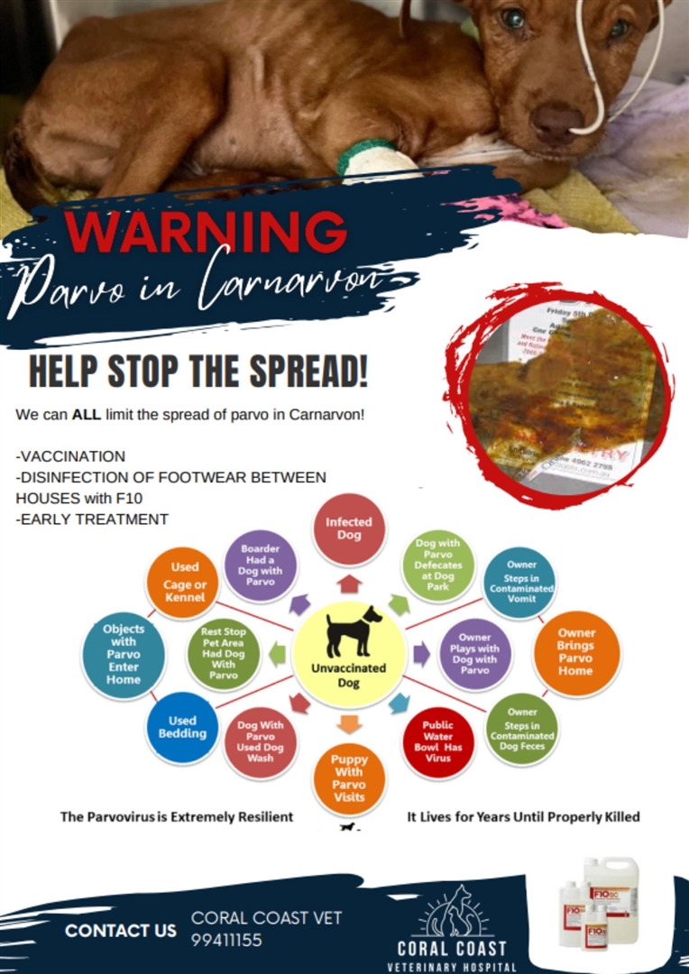 We are currently dealing with a severe outbreak of Parvo in Carnarvon.