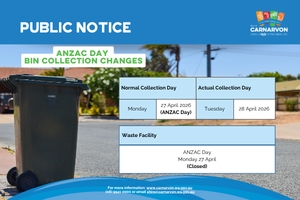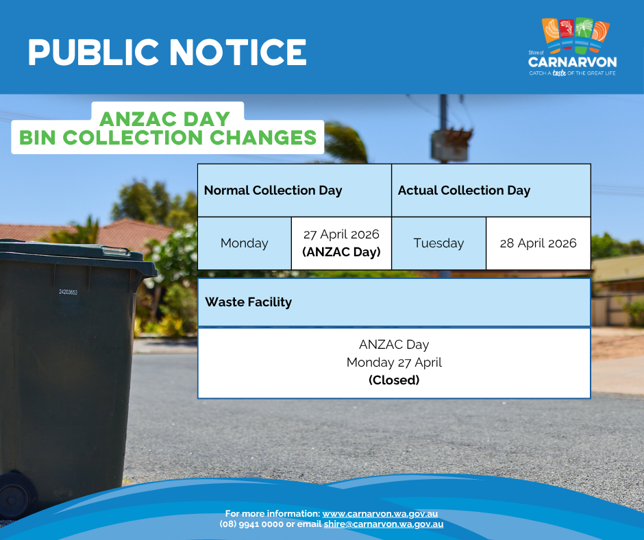 For further information, please contact the Shire of Carnarvon Customer Service team on (08) 9941 0000 or visit