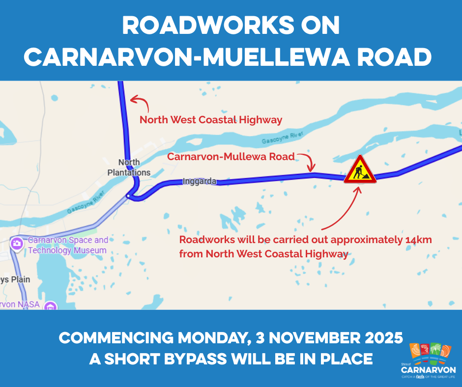 ABBL Construction will be replacing a damaged grid at approximately 14km from North West Coastal Highway on Carnarvon-Mullewa Road on Monday, 3 November 2025.