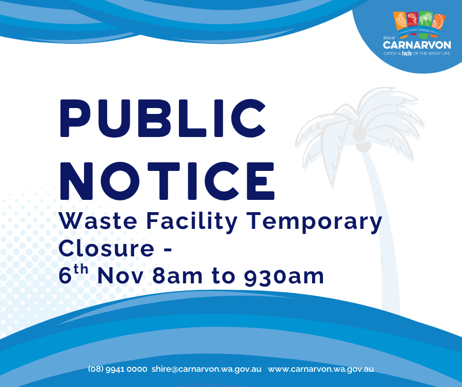 The Waste Facility will be closed temporarily on the 6th of November from 8am to 9.30am.